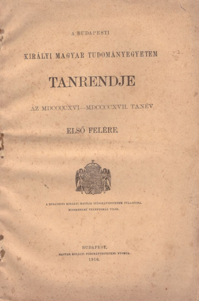 A Budapesti Királyi Magyar Tudományegyetem tanrendje az MDCCCCXVI-MDCCCCXVII. tanév első felére