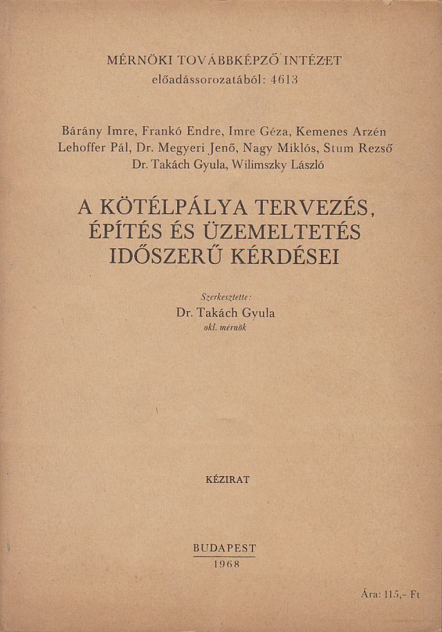 A Mérnöki Továbbképző Intézet 1967. évi tavaszi előadásának anyaga