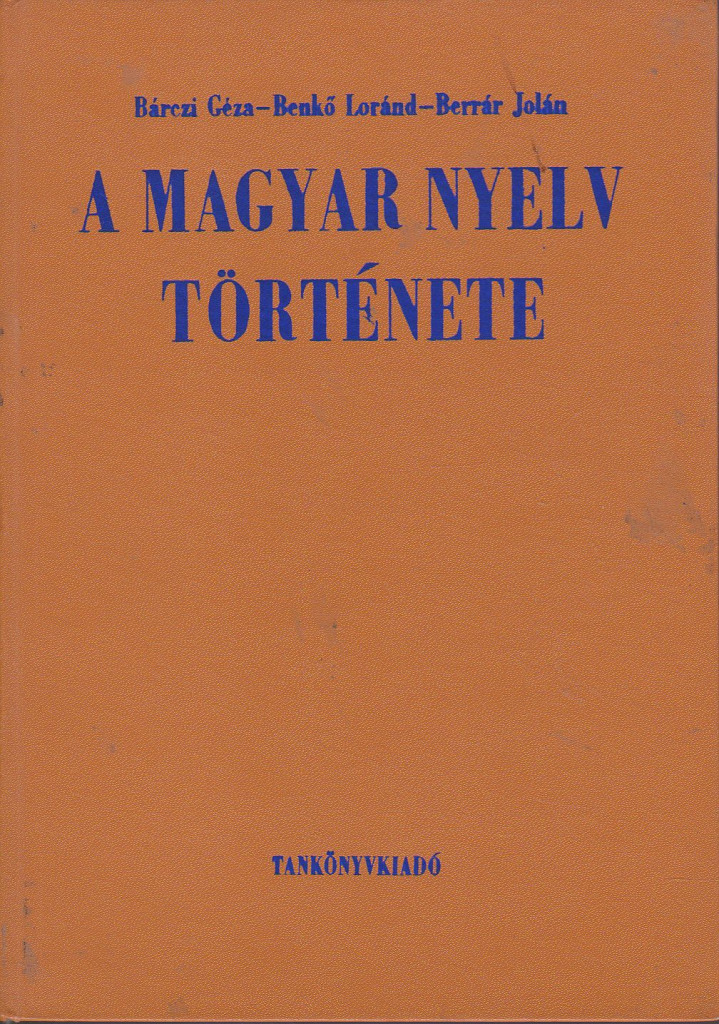 Bevezetés / Bárczi Géza 5 A szinkronikus és a diakronikus nyelvvizsgálat 7 A nyelvtörténet összefüggése a társadalom történetével 8 A nyelvi változások mibenléte 10 A nyelvjárások és az irodalmi nyelv 13 A magyar nyelvtörténet korszakai 17 A magyar nyelvtörténet forrásai és felhasználásuk módszere / Benkő Loránd 21 A rokon nyelvek 23 Az idegen nyelvek 23 A nyelvemlékek 30 A nyelvemlékek általános jellemzői 31 A kéziratos nyelvemlékek 38 A nyomtatott nyelvemlékek 54 A nyelvemlékek nyelvi sajátságai 63 A régi magyar nyelvkönyvek 81 A mai magyar nyelv 84 Az általános nyelvészet tanúságtétele 91 Hangtörténet / Bárczi Géza 95 Általános kérdések 97 Az ősmagyar kor hangváltozásai 101 A mássalhangzók története 101 A magánhangzók története 106 A nyelvemlékes kor hangváltozásai 111 A mássalhangzók története 111 A magánhangzók története 143 A nyelvi jelek története / Benkő Loránd, Berrár Jolán 181 A nyelvi jelek (osztályaik és rendszereik) kialakulása 185 Szótörténet 193 A szófajok története / Berrár Jolán 193 Általános kérdések 193 A fogalomjelölő szófajok 201 Egyéb szófajok 207 A szóelemek alaktörténete / Berrár Jolán 212 Általános kérdések 212 A tőtípusok 216 A toldaléktípusok 229 A szavak jelentéstörténete / Berrár Jolán 235 A jelentés terjedelmének bővülése és szűkülése 235 Az érintkezésen és hasonlóságon alapuló átvitelek 241 A jelentésváltozások okai és hatásai 247 A szóhangulat változása 251 A szókészlet szemantikai csoportjai 255 A magyar szókészlet eredete / Benkő Loránd 259 Általános kérdések 259 Az ősi szókészlet 269 Az idegen eredetű szókészlet 278 A belső keletkezésű szókészlet 307 A magyar szókészlet fejlődésének jellemző vonásai / Benkő Loránd 351 Szerkezeti (strukturális) változások 352 Helyzeti (funkcionális) változások 361 A magyar tulajdonnevek története / Benkő Loránd 374 Mondattörténet / Berrár Jolán 389 A viszonyító eszközök története 389 A viszonyszók 390 A jelek és a ragok története 400 A mondattani jelenségek testetlen kifejezőeszközeinek története 425 A szintaktikai szerkezetek története 429 Az alany és az állítmány 429 Az alárendelő szerkezetek 432 A mellérendelő szerkezetek 455 A mondattípusok története 457 A mondatfajták 457 A mellérendelő összetett mondatok 461 Az alárendelő összetett mondatok 467 A magyar nyelvtörténet összefoglaló áttekintése / Bárczi Géza 487 Az előmagyar kor 489 Az ősmagyar kor 496 Az ómagyar kor 503 A középmagyar kor 523 Az újmagyar kor 542 Függelék: A magyar nyelvtörténeti kutatások történetének vázlata / Bárczi Géza 581