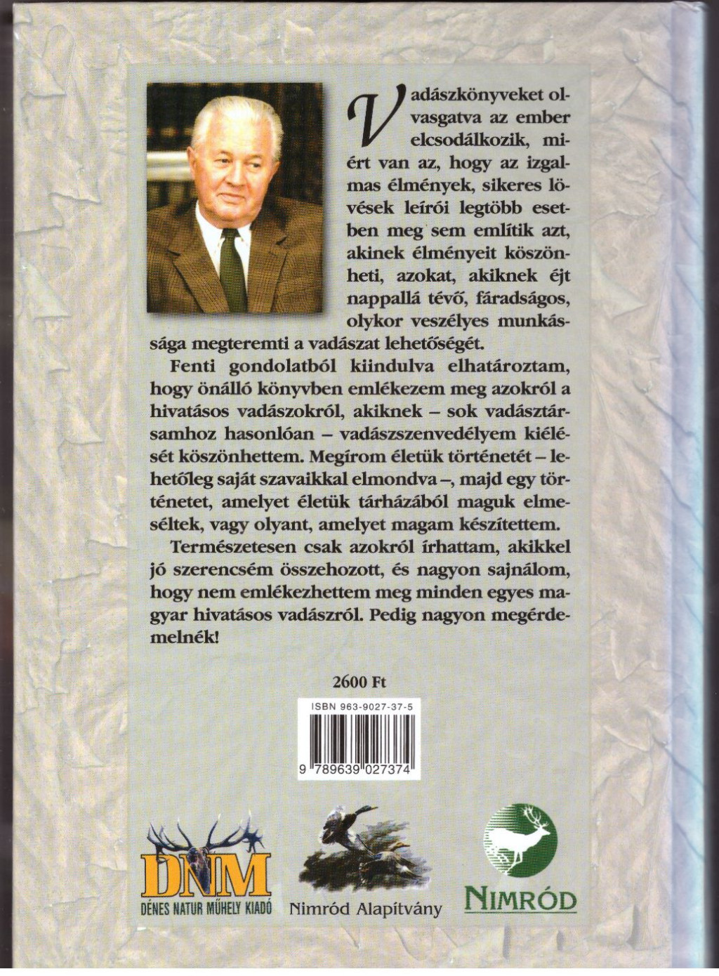 Ez a könyv a Nimród Alapítvány hetvenedik kiadványa. A borító fotóját Blaumann Ödön fotóművész készítette. A gyűjtők részére készült 300 számozott példányból ez a ... számú.