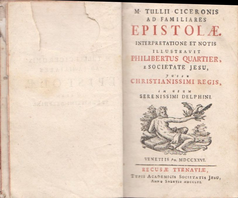 Alcím ... in usum Serenissimi DelphiniSzerző/Szerkesztő M. Cicero [Cicero, Marcus Tullius]; interpretatione et notis illustravit Philibertus QuartierKiadás helye Tyrnaviae [Nagyszombat]Kiadás éve 1756Kiadásjelzés [Venetiis an. 1726]Nyomda Typis Academicis Societatis Jesu, [Nagyszombat]Oldalszám [4], LIV, 890, [8]; 8o [nyolcadrét]Nyelv latinKötéstípus Félpergamen keményfedeles kötött papírfedélÁllapot jó, korának megfelelő, ép könyvtest, előzékén korabeli tulajdonosi bejegyzés kivágással eltávolítvaRaktárkészlet VANCikkszám EE5_CiceroTömeg 739 g/db