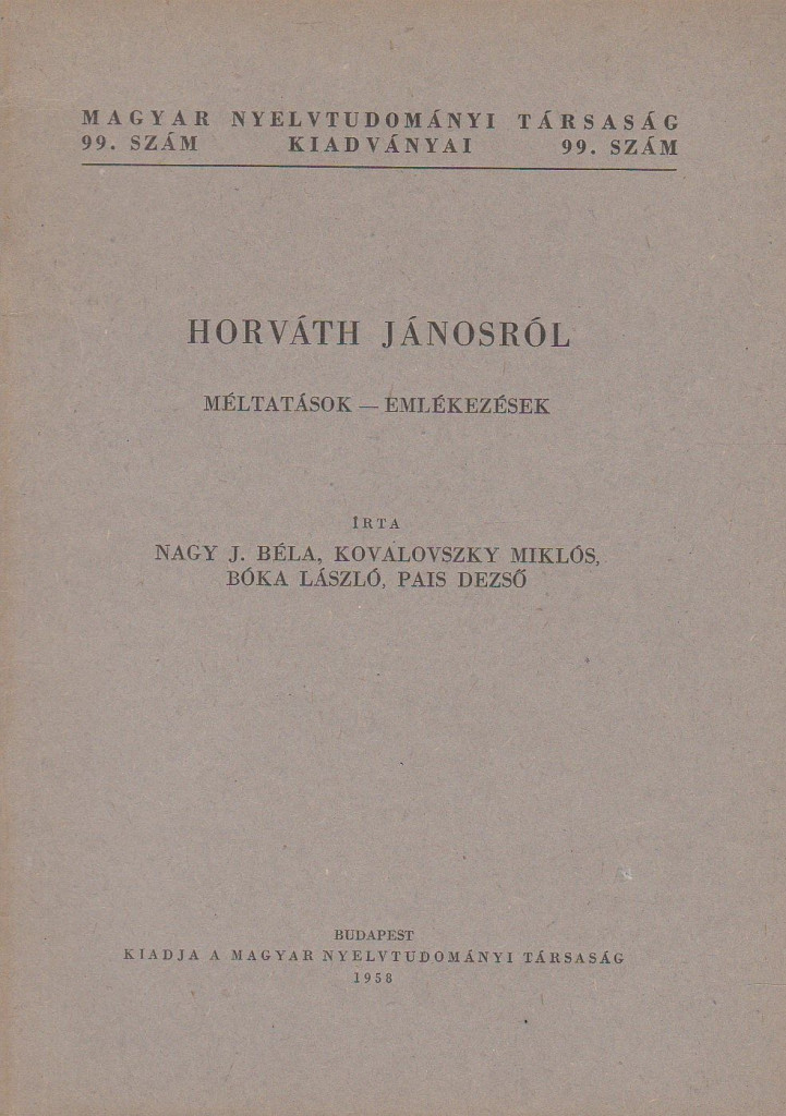 Alcím méltatások, emlékezésekSzerző/Szerkesztő Nagy J. Béla, Kovalovszky Miklós, Bóka László, Pais Dezső; szerk. Pais DezsőKiadó Magyar Nyelvtudományi TársaságKiadás helye BudapestKiadás éve 1958Sorozat A Magyar Nyelvtudományi Társaság Kiadványai; 99.Nyomda Akadémiai Ny., BudapestOldalszám 31Nyelv magyarKötéstípus Tűzött papírkötésÁllapot jóRaktárkészlet VANCikkszám P1_3_HorvathTömeg 68 g/db