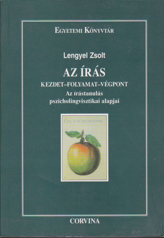Alcím Az írástanulás pszicholingvisztikai alapjaiSzerző/Szerkesztő Lengyel ZsoltKiadó CorvinaKiadás helye BudapestKiadás éve 1998Sorozat Egyetemi KönyvtárISBN 963 13 4806 7Nyomda Printer-Art Gmk.Oldalszám 202Nyelv magyarKötéstípus Ragasztott puha papírkötésÁllapot Jó.Raktárkészlet VANCikkszám EE6_LZSTömeg 365 g/db