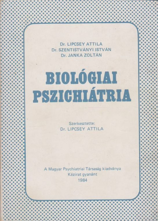 Alcím [kézirat gyanánt]Szerző/Szerkesztő Lipcsey Attila, Szentistványi István, Janka Zoltán; szerk. Lipcsey AttilaKiadó Magyar Psychiatriai TársaságKiadás helye [Budapest]Kiadás éve 1984Oldalszám 342Nyelv magyarKötéstípus Ragasztott papírkötésÁllapot jóRaktárkészlet VANCikkszám P12_4_Lipcsey2Tömeg 404 g/db