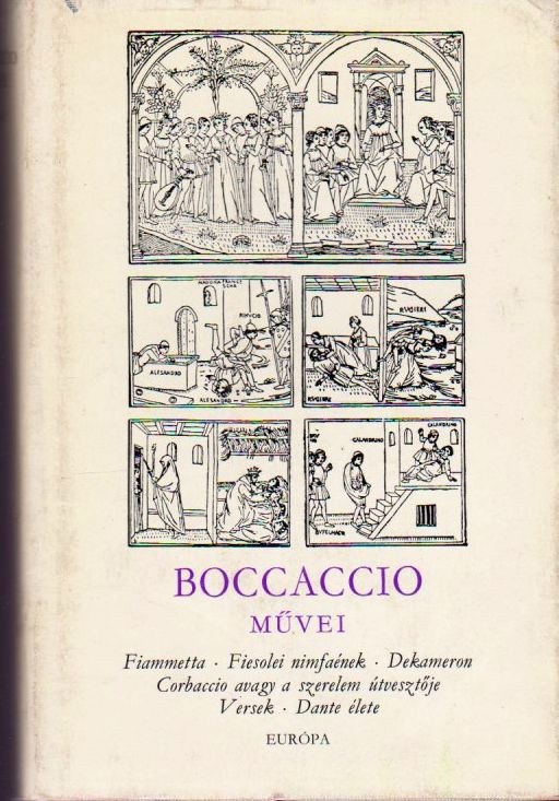 Első kötet: Fiammetta Fordította Jékely Zoltán 5 Fiesolei Nimfaének Fordította: Végh György 183 Dekameron Fordította: Révay József A verseket Jékely Zoltán fordította 315 Elöljáró beszéd 317 Első nap 321 Első novella 344 Második novella 360 Harmadik novella 365 Negyedik novella 368 Ötödik novella 373 Hatodik novella 376 Hetedik novella 379 Nyolcadik novella 385 Kilencedik novella 388 Tizedik novella 389 Második nap 398 Első novella 399 Második novella 405 Harmadik novella 412 Negyedik novella 422 Ötödik novella 428 Hatodik novella 443 Hetedik novella 459 Nyolcadik novella 485 Kilencedik novella 503 Tizedik novella 519 Harmadik nap 531 Első novella 354 Második novella 542 Harmadik novella 549 Negyedik novella 560 Ötödik novella 566 Hatodik novella 573 Hetedik novella 584 Nyolcadik novella 604 Kilencedik novella 616 Tizedik novella 627 Negyedik nap 638 Első novella 646 Második novella 659 Harmadik novella 870 Negyedik novela 678 Ötödik novella 684 Hatodik novella 689 Hetedik novella 697 Nyolcadik novela 702 Kilencedik novella 408 Tizedik novella 712 Jegyzetek Összeállította Rózsa Zoltán 727 Második kötet Dekameron 5 Fordította: Révay József A verseket Jékely Zoltán fordította Ötödik nap 5 Első novella 6 Második novella 16 Harmadik novella 26 Negyedik novella 34 Ötödik novella 41 Hatodik novella 48 Hetedik novella 55 Nyolcadik novella 63 Kilencedik novella 69 Tizedik novella 77 Hatodik nap 90 Első novella 93 Második novella 95 Harmadik novella 99 Negyedik novella 101 Ötödik novella 104 Hatodik novella 107 Hetedik novella 109 Nyolcadik novella 113 Kilencedik novella 115 Tizedik novella 118 Hetedik nap 135 Első novella 136 Második novella 142 Harmadik novella 147 Negyedik novella 154 Ötödik novella 159 Hatodik novella 168 Hetedik novella 172 Nyolcadik novella 180 Kilencedik novella 189 Tizedik novella 202 Nyolcadik nap 210 Első novella 211 Második novella 214 Harmadik novella 221 Negyedik novella 232 Ötödik novella 238 Hatodik novella 242 Hetedik novella 250 Nyolcadik novella 277 Kilencedik novella 283 Tizedik novella 301 Kilencedik nap 318 Első novella 319 Második novella 326 Harmadik novella 330 Negyedik novella 335 Ötödik novella 340 Hatodik novella 350 Hetedik novella 356 Nyolcadik novella 358 Kilencedik novella 363 Tizedik novella 369 Tizedik nap 377 Első novella 378 Második novella 381 Harmadik novella 387 Negyedik novella 395 Ötödik novella 403 Hatodik novella 409 Hetedik novella 416 Nyolcadik novella 425 Kilencedik novella 446 Tizedik novella 467 Végezetül szól az íródeák 484 Corbaccio Fordította: Jékely Zoltán 491 Versek 579 Egy hűs forrás körül, egy csöppnyi réten... Fordította: Végh György 581 Ezernyi fának lombos hűvösében Fordította: Molnár Imre 581 Ámor vitt el, mikor a nap még égett...Fordította: Végh György 582 Fürgén sikamló kis ladik farában...Fordította: Molnár Imre 582 Kacagó fényét szép szelíd szemének... Fordította: Végh György 583 Azt a szerelmes fényt, amely ragyogva... Fordította: Molnár Imre 584 Villáma tiszta szemnek, mely szívemben... Fordította: Molnár Imre 584 A sóvárgás, mit legjobb éveimben...Fordította: Végh György 585 Sohasem tudnék - bármennyit is nézem... Fordította: Végh György 585 Szelíd szava és édes nevetése Fordította: Végh György 586 Gyakran megesik, hogy gondolatokba...Fordította: Majtényi Zoltán 586 Ahogy, szép tiszta asszony, nézve nézem... Fordította: Végh György 587 Oly bűvölettel csábít hálójába... Fordította: Molnár Imre 588 Átkozza Ámort sok bolond szünetlen Fordította: Molnár Imre 588 Ámor, ki úr erénye, íjjal által...Fordította: Molnár Imre 589 Az a kedves szellem, melyet szívembe...Fordította: Végh György 590 Amikor bensőmben az első lángom...Fordította: Végh György 591 Ó, nem merem nézni, és szerencsétlen... Fordította: Végh György 592 Mért gyötrődsz, küzdesz, mért reszeli ráspoly...Fordította: Majtényi Zoltán 592 Orcámat sáppadón, dúltan, gyötörten..Fordította: Molnár Imre 593 Parthenopé, a szirén, e vidéken.. Fordította: Majtényi Zoltán 593 A folyók s patakok tükre üveg lett...Fordította: Végh György 594 Ha megtörténne éveim sorában...Fordította. Végh György 595 Ezt mondja a lelkem olykor magamban...Fordította: Végh György 595 A fényt egy-egy madárka úgy kívánja...Fordította: Molnár Imre 596 A könnyek, sóhajok, s hogy nem remélek Fordította: Végh György 596 Csak fusson el sok sóhajom s a könnyem Fordította: Végh György 597 Lehellete megérint a zerírnek...Fordította: Végh György 598 Hogy bajától, égtől, tengertől félek...Fordította: Végh György 598 Szerelmi gond, elégségében egyszer...Fordította: Majtényi Zoltán 599 Édes jó urunk, Ámor...Fordította: Végh György 601 Baia, ó, bár pusztulna el nevednek...Fordította: Végh György 603 Szemem többé már nem merem emelni ...Fordította: Végh György 604 Gyötrődöm, mar a bánat...Fordította: Végh György 604 Ó, a virág, lehullva... Fordította: Végh György 605 Ha még megélem, hogy megoldom, Ámor...Fordította: Végh György 606 Visszanézek törékeny életemre...Fordította: Végh György 606 Hippocrates, Avicenna, Galenus... Fordította: Majtényi Zoltán 607 A Helicon magasztos kórusába...Fordította: Molnár Imre 607 Minden jelesség, jó virtus kihúnyva...Fordította: Végh György 609 Mondd, mit kutatsz, boldond? Mit nézel egyre? Fordította: Molnár Imre 609 Dantém, te most csillagok ragyogtak... Fordította: Végh György 610 Míg azt reméltem, mindkét oldalára Fordította: Molnár Imre 611 Nehéz és borzalmas nagyon halálra...Fordította: Végh György 612 Nem szemed bája, nem fürtöd aranyja Fordította: Végh György 613 Ó, nap, aki mindkét életre hinted... Fordította: Végh György 613 Ismeretlenhez Fordította: Majtényi Zoltán 613 Ugyanahhoz Fordította: Majtényi Zoltán 61
