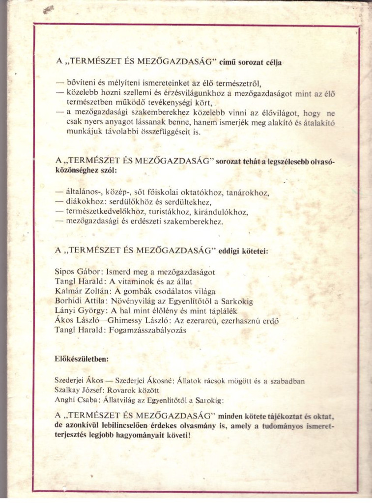 Szerző/Szerkesztő Szemere LászlóKiadó Mezőgazdasági KiadóKiadás helye BudapestKiadás éve 1970Sorozat Természet és MezőgazdaságNyomda Alföldi Nyomda. DebrecenOldalszám 175Nyelv MagyarKötéstípus fűzött puha papírkötésÁllapot JóRaktárkészlet VANCikkszám P10_5_foldalattigombaTömeg 240 g/db