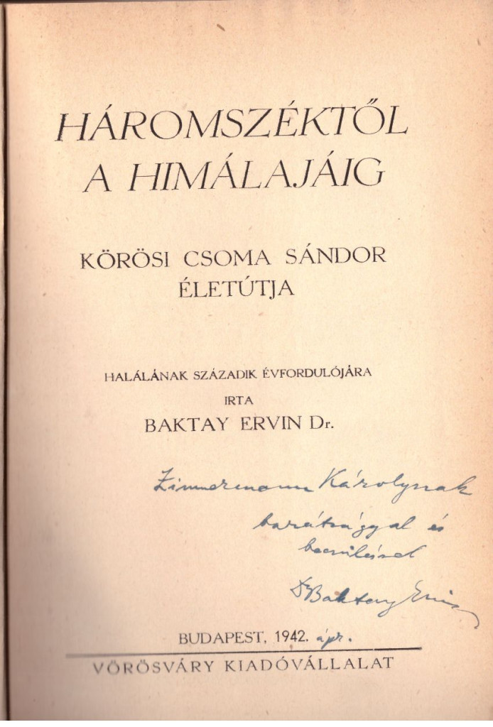 Ezzel tartozunk Kőrösi Csoma Sándor emlékezetének. Kérdés azonban, szükség lehet-e szerény munkámra. Hiszen életét eddig többen is megírták, s valószínű, hogy a Magyar Tudományos Akadémia szintén Kőrösi Csoma Sándor munkásságának szakavatott méltatásával fogja megünnepelni a naqy székely-magyar emlékét az évforduló alkalmából.