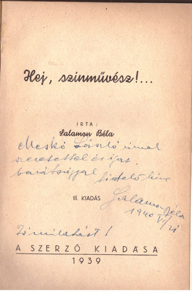 Ez a kis könyvem úgy született meg, hogy 1939-ben az akkori »törvény« leparancsolt a színpadról. 1939. május 31-én játszotttam utoljára. Akkor is, mint előzően sok százszor, felejthetetlen barátom Szőke Szakáll "Vonósnégyes" c. bohózatát játszottam. Amikor legördült a függöny és kimentem a rivalda elé, hogy mégegyszer utoljára megfürödjek a közönség tapssal kifejezett szeretetében, utána a függöny mögött elbőgtem magam. Hiába tapsoltak még azután kitartóan és dübörögve, ütemesen és nevemet kiáltva, nem mentem ki. Nem akartam, hogy engem, akit a közönség annyi éven át kacagva nézett, most drámai szerepben zokogni lásson. Valahogy így érezheti magát a hal, akit a partra dobtak. (Tudom én, hogy »amely«-nek kellett volna írni a halat, de ha már velem hoztam kapcsolatba, hadd érje ez a kis megtiszteltetés.)