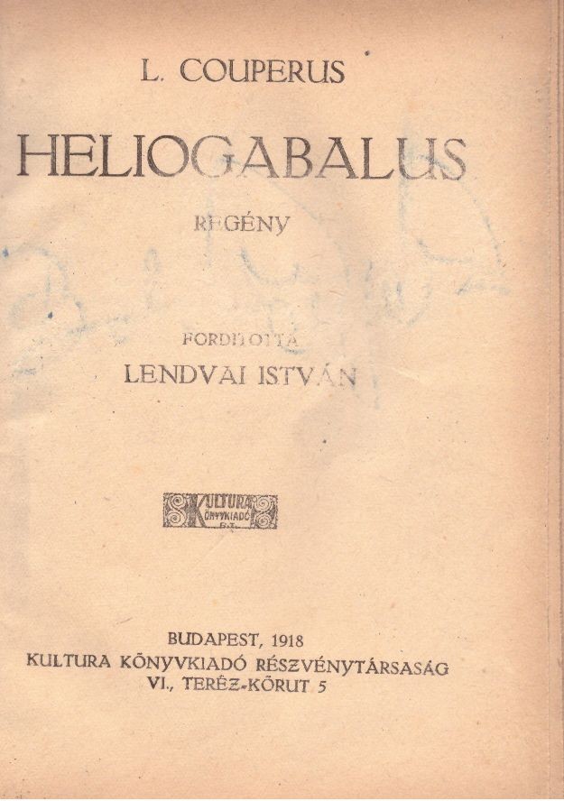 Alcím RegénySzerző/Szerkesztő L. CouperusKiadó Kultura KönyvkiadóKiadás helye BudapestKiadás éve 1918Fordító Lendvai IstvánNyomda Ujságüzem Könyvkiadó és Nyomda Rt.Oldalszám 352Nyelv magyarKötéstípus FélbőrÁllapot Jó. Megsárgult könyvlapok.Raktárkészlet VANCikkszám PB_5_HELIOGTömeg 435 g/db