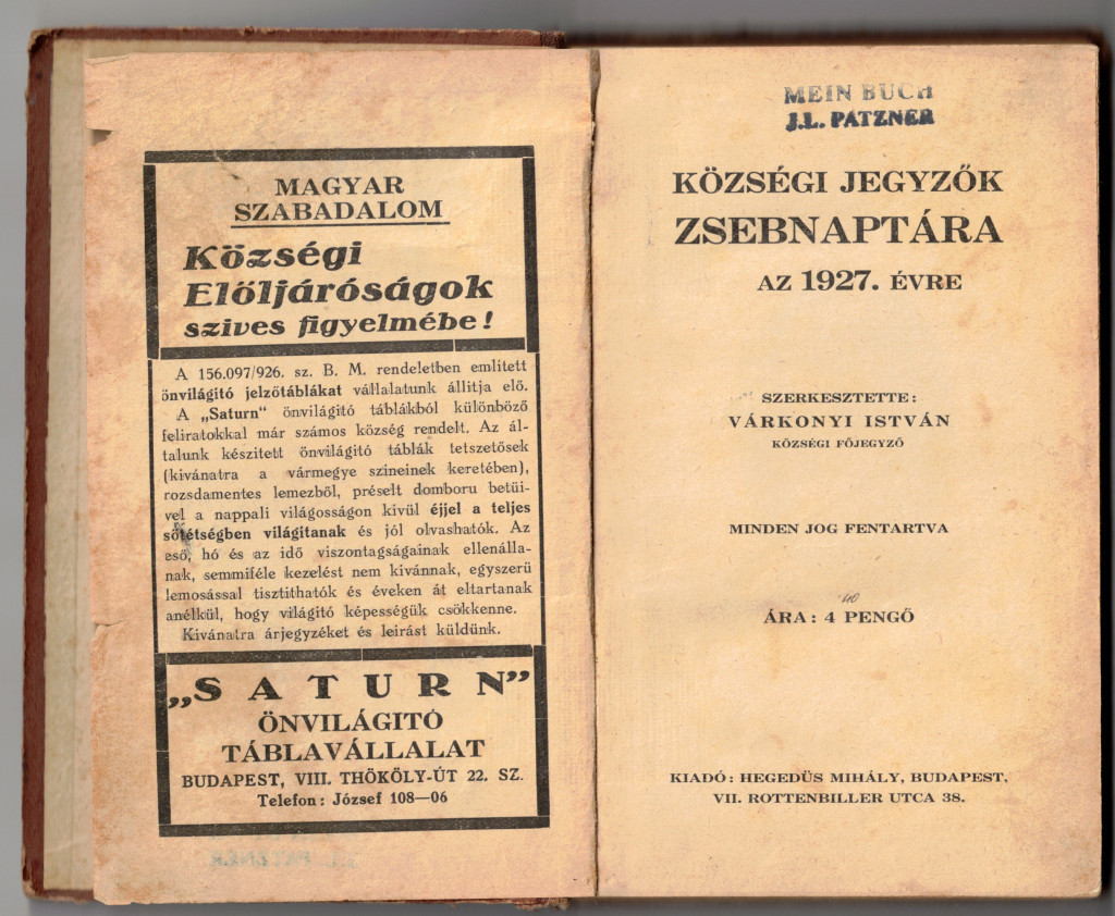 Községi Jegyzők zsebnaptára az 1927. évre