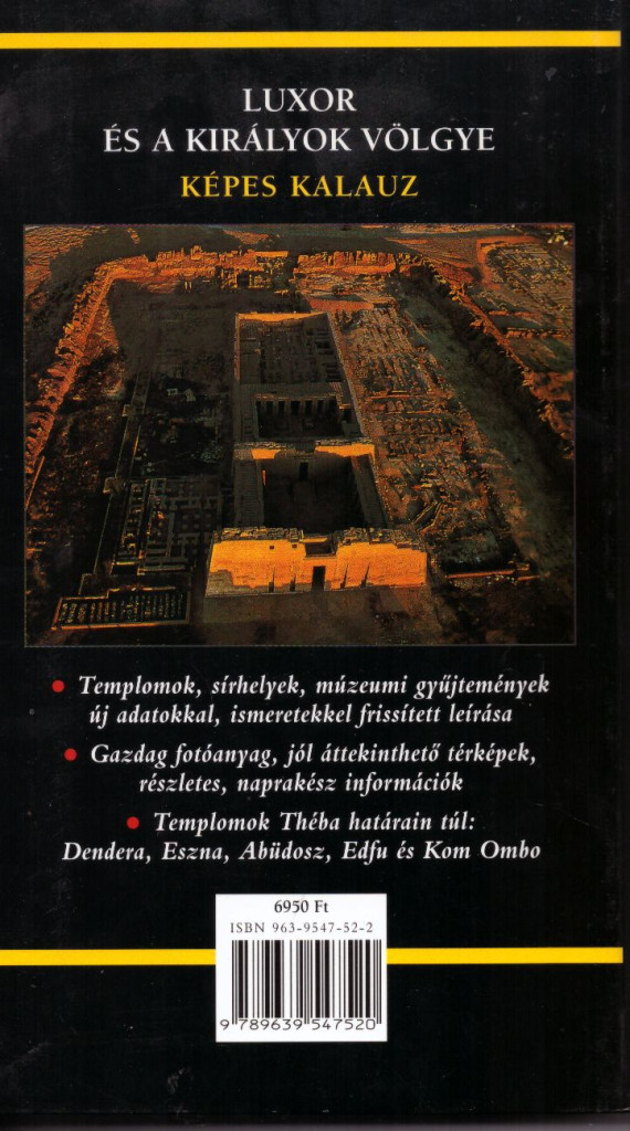 Templomok, sírhelyek, múzeumi gyűjtemények új adatokkal, ismeretekkel frissített leírása. A könyv gazdag fotóanyagot, jól áttekinthető térképeket, részletes, naprakész információkat tartalmaz a Királyok völgyéről, Királynék völgyéről, nemesi sírokról. A könyv olyan utazók számára készült, akik részletesen meg akarják ismerin Théba műemlékeit, jobban meg szeretnék érteni azok eredeti rendeltetését. Persze az is haszonnal forgathatja a kötetet, aki már hazatért az útról, és felidézné a látottakat; és az is, aki csupán karosszéke kényelméből álmodik egy luxori utazásról. Templomok Théba határain túl: Dendera, Eszna, Abüdosz, Edfu és Kom Ombo.