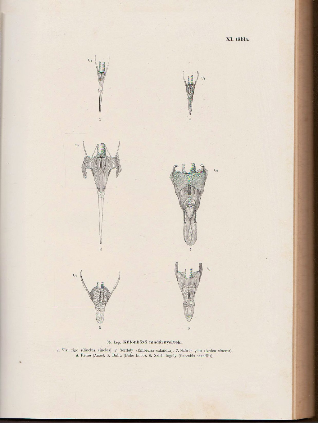 I. kötet A könyv története A szerző megnyitója Tartalom Képek jegyzéke Az állatok és az ember 3 A madarak hasznos és káros voltának fogalma 8 A madárszervezet mint eszköz 20 A madár külső testrészei 22 A madárszervezet alkalmazkodása és működése 27 A madarak munkálkodásának jelentősége a természet háztartásában 94 A madarak munkájának értéke az ember gazdaságában 111 Madaraink csoportosítása jelentőségök szerint 124 A madarak védelme 128 A madarak földrajzi elterjedése és a költözködés jelensége 160 Irodalom 176 II. kötet Tartalom Képek jegyzéke A második kötethez A rendszer 1 Mértékek magyarázata 10 Buvárok 12 1. család: Alkafélék 12 1. nem: Alka 13 2. család: Vöcsökfélék 14 2. nem. Buvár 14 3. nem: Vöcsök 19 Hosszúszárnyuak 31 3. család: Hojszafélék 31 4. nem: Vészmadár 32 5. nem: Hojsza 33 4. család: Sirályfélék 34 6. nem: Halfarkas 35 7. nem: Sirály 39 8. nem: Csüllő 53 9. nem: Csér 55 10. nem: Szerkő 63 Evezőlábuak 69 5. család: Kárókatonafélék 69 11. nem: Kárókatona 69 6. család: Gődényfélék 76 12. nem: Gődény 77 Fogascsőrűek 82 7. család: Bukófélék 82 13. nem: Bukó 82 8. család: Réczefélék 82 14. nem: Bütykösrécze 83 15. nem: Dunnarécze 88 16. nem: Feketerécze 88 17. nem: Bukórécze 90 18. nem: Récze 91 19. nem: Kalanasrécze 93 20. nem: Nyílfarkúrécze 101 9. család: Lúdfélék 116 21. nem: Ásólúd 117 22. nem: Tengerilúd 120 23. nem: Lúd 122 10. család: Hattyúfélék 124 24. nem: Hattyú 134 Futók 135 11. család: Lilefélék 138 25. nem: Csigarforgató 139 26. nem: Kőforgató 140 27. nem: Futómadár 141 28. nem: Székicsér 142 29. nem: Lile 146 30. nem: Bibicz 157 31. nem: Ugartyúk 163 12. család: Szalonkafélék 167 32. nem: Gulipán 168 33. nem: Tőcsmadár 168 34. nem: Viztaposo 170 35. nem: Fenyérfutó 173 36. nem: Sárjáró 173 37. nem: Parfutó 173 38. nem: Paizsosczankó 176 39. nem: Czankó 177 40. nem: Goda 179 41. nem: Póling 188 42. nem: Sárszalonka 192 43. nem: Szalonka 202 13. család: Túzokfélék 205 44. nem: Túzok 212 14. család: Darúfélék 220 45. nem: Darú 226 15. család: Guvatfélék 226 46. nem: Guvat 233 47. nem: Haris 233 48. nem: Vizicsibe 243 49. nem: Vizityúk 244 50. nem: Szárcsa 246 16. család: Pusztaityúkfélék 249 51. nem: Pusztaityúk 254 52. nem: Talpastyúk 256 Lépkedők 268 17. család: Ibiszfélék 274 53. nem: Batla 269 54. nem: Kanalasgém 272 18. család: Gólyafélék 274 55. nem: Gólya 274 19. család: Gémfélék 285 56. nem: Bakcsó 286 57. nem: Bölömbika 288 58. nem: Poczgém 291 59. nem: Gém 294 Turbékolók 315 20. család: Galambfélék 316 60. nem: Galamb 316 61. nem: Gerle 325 Kaparók 333 21. család: Fáczánfélék 334 62. nem: Fáczánok 334 22. család: Fogolyfélék 337 63. nem: Fogoly 338 64. nem: Szirtifogoly 345 65. nem: Fürj 347 23. család: Fajdfélék 355 66. nem: Fajd 356 67. nem: Császármadár 364 Ragadozók 368 24. család: Keselyüfélék 369 68. nem: Keselyű 369 69. nem: Fakókeselyű 370 70. nem: Dögkeselyű 374 25. család: Saskeselyüfélék 375 71. nem: Saskeselyű 376 26. család: Sólyomfélék 378 72. nem: Rétihéja 379 73. nem: Héja 387 74. nem: Karvaly 389 75. nem: Kánya 392 76. nem: Darázsölyv 392 77. nem: Halászsas 395 78. nem: Rétisas 397 79. nem: Kigyászölyv 399 80. nem: Ölyv 402 81. nem: Gatyásölyv 402 82. nem: Sas 404 83. nem: Vércse 409 84. nem: Sólyom 410 27. család: Bagolyfélék 422 85. nem: Buhu 429 86. nem: Fülesbagoly 437 87. nem: Füleskuvik 438 88. nem: Macskabagoly 440 89. nem: Hóbagoly 444 90. nem: Gatyáskuvik 446 91. nem: Kuvik 450 92. nem: Gyöngybagoly 456 Kúszók 459 28. család: Kakukfélék 459 93. nem: Kakuk 460 29. család: Harkályfélék 468 94. nem: Nyaktekercs 468 95. nem: Harkály 471 96. nem: Fakopáncs 473 97. nem: Höcsik 487 98. nem: Küllő 488 Üldögélők 492 30. család: Jégmadárfélék 493 99. nem: Jégmadár 495 31. család: Gyurgyalagfélék 496 100. nem: Gyurgyalag 498 32. család: Bankafélék 498 101. nem: Banka 500 33. család: Szalakótafélék 500 102. nem: Szalakóta 501 Surranók 504 34. család: Kecskefejőfélék 504 103. nem: Kecskefejő 507 35. család: Sarlósfecskefélék 507 104. nem: Sarlósfecske 511 Éneklők 512 36. család: Fecskefélék 512 105. nem: Kotrófecske 514 106. nem: Gatyásfecske 516 107. nem: Villásfecske 527 37. család: Légykapófélék 527 108. nem: Csonttollú 529 109. nem: Légykapó 535 38. család: Gébicsfélék 536 110. nem: Gébicsek 536 39. család: Varjufélék 544 111. nem: Varju 544 112. nem: Csóka 548 113. nem: Szarka 561 114. nem: Szajkó 564 115. nem: Magtörő 565 116. nem: Havasicsóka 569 40. család: Málinkófélék 572 117. nem: Málinkó 573 41. család: Seregélyfélék 573 118. nem: Pásztormadár 576 119. nem: Seregély 576 42. család: Pintyfélék 579 120. nem: Veréb 584 121. nem: Meggyvágó 591 122. nem: Pinty 593 123. nem: Zöldike 599 124. nem: Zsezse 601 125. nem: Csíz 607 126. nem: Tengelicz 608 127. nem: Csicsörke 611 128. nem: Pirók 613 129. nem: Süvöltő 615 130. nem: Keresztcsőrü 618 131. nem: Sarkantyús sármány 621 132. nem: Sármány 623 43. család: Pacsirtafélék 631 133. nem: Pacsirta 632 134. nem: Fülespacsirta 641 44. család: Billegetőfélék 642 135. nem: Pipis 647 136. nem: Billegető 656 45. család: Mászófélék 658 137. nem: Sziklamászó 660 138. nem: Fakúsz 660 46. család: Czinegefélék 661 139. nem: Csuszka 663 140. nem: Czinege 663 141. nem: Őszapó 683 142. nem: Nádczinege 686 143. nem: Szövőczinege 688 144. nem: Királyka 691 47. család: Bujkálófélék 694 145. nem: Vizirigó 698 146. nem: Ökörszem 701 48. család: Poszátafélék 702 147. nem: Szürkebegy 705 148. nem: Poszáta 715 149. nem: Nádiposzáta 720 150. nem: Sitka 727 151. nem: Tücsökmadár 732 152. nem: Geze 734 153. nem: Füzike 735 154. nem: Rigó 740 155. nem: Kövirigó 755 156. nem: Hantmadár