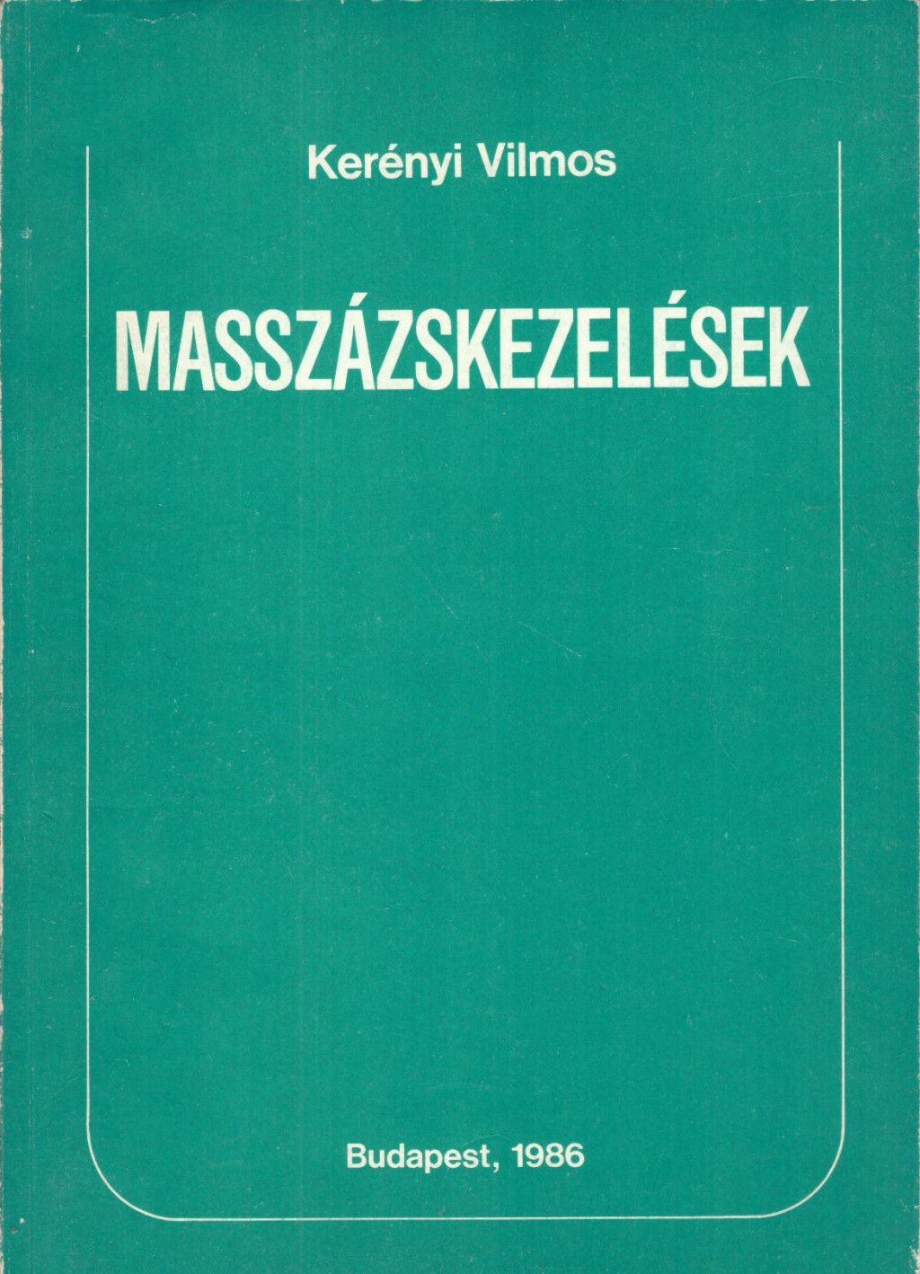 E könyv Kerényi Vilmos írásaiból állt össze, aki Bécsben orvosi egyetemet végzett, abszolvált és ezután teljes mértékben a fizioterápia tudományának szentelte életét. Ezért munkája életmű ezen a téren, hiszen egész életén át szerzett tapasztalatait adja. A masszázs formái ugyan ismertek nagy vonalakban, de kiegészítve egyéb fizioterápiás kombinációkkal, valamint egyes szakterületek konkrét betegségeire ajánlott, bevált eljárásai irodalmunkban eddig ismeretlenek, ezért a munka igen nagy értékű.