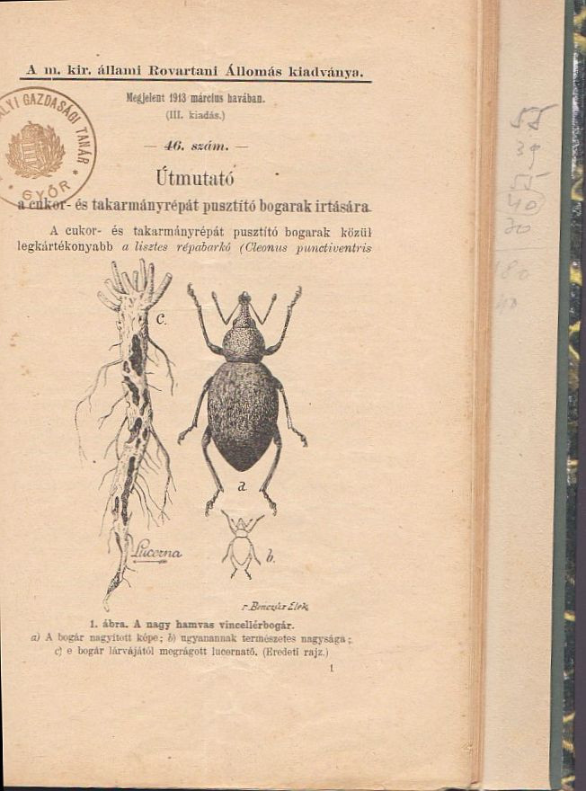 2. Útmutató a cukor- és takarmányrépát pusztító bogarak irtására [sic!] ([Bp.] : M. Kir. Állami Rovartani Állomás kiadványa, 1913.)