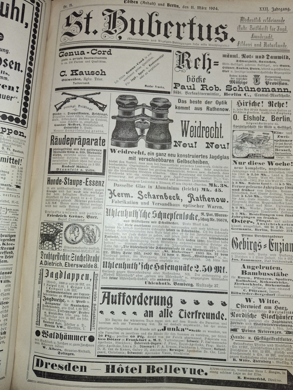A német nyelvű szakfolyóirat 22. évfolyama 1904-ből nem csupán a vadászat, halászat és természetvédelem korabeli állását mutatja be,