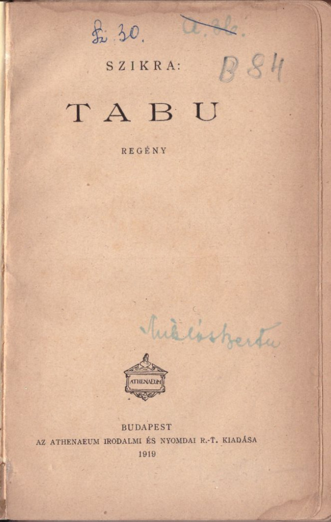 Szerző/Szerkesztő SzikraKiadó Athenaeum Irodalmi és Nyomdai R.-T.Kiadás helye BudapestKiadás éve 1919Nyomda Athenaeum r.-t. könyvnyomdájaOldalszám 301Nyelv magyarKötéstípus Könyvkötői félbőr kötés.Állapot Jó. Átkötött példány. A címoldalon tintával írt bejegyzések láthatók.Raktárkészlet VANCikkszám P_PROZA7_tabuTömeg 183 g/db