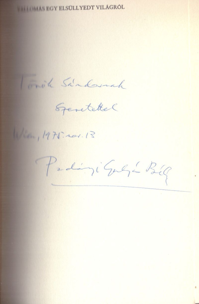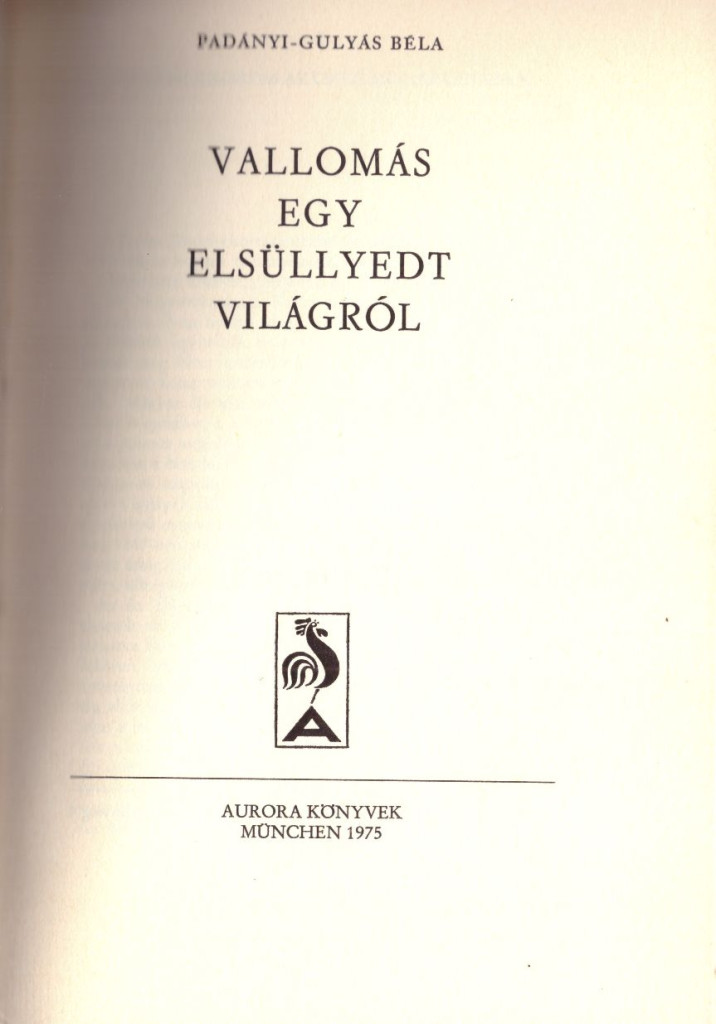 Vallomás egy elsüllyedt világról címmel jelzi Padányi-Gulyás Béla a közelmúlt évtizedeinek távlatából megírt visszaemlékezéseit, melyek az utolsó Ferenc József-i évektől a második világháborút megelőző időbe ívelnek. Egy mozgalmas élet tapasztalatai, élményei. Mint ifjú diák-diplomata a két háború közt, majd a második világháború után mint nemzetgyűlési képviselő, a Kisgazdapárt külügyi osztályának vezetője és a Külügyminisztérium parlamenti előadója, az események résztvevője vagy szemtanúja, végigvezeti az olvasót az ábrázolt időszak politikai szövevényein, buktatóin. Módszere nem a tények puszta leírása, hanem az események belső összefüggéseinek a keresése, e kor sokat vitatott külpolitikai kérdéseinek az analizálása. Átfogó képet rajzol a történelmileg döntően fontos évtizedekről: ismerteti a politikai törekvéseket, áramlatokat, csoportokat, intézményeket. Pillanatfelvételek, találkozások, jelentéktelennek látszó események emberközelbe hozzák a két világháború közötti nemzetközi és magyar politikai élet egyes kimagasló személyiségeit. Felevenedik Benes, Mussolini, Grandi olasz külögyminiszter, Eden, Bethlen István, Gömbös Gyula, Eckhardt Tibor, Bajcsy-Zsilinkszy Endre, Szabó Dezső, Teleki Pál és mások alakja, s az egyéni sorsokon, emberi típusokon, megrajzolt portrékon keresztül a diplomáciai történetírás száraz adatai helyett izgalmas olvasmányt kapunk a korra jellemző légkörről, a nemzeti történelem utóbbi fél évszázadának tragikus fejleményeiről. Padányi-Gulyás Béla könyve kitűnő korrajz, értékes kordokumentum, gazdag forrásanyag történetíróknak és közíróknak.
